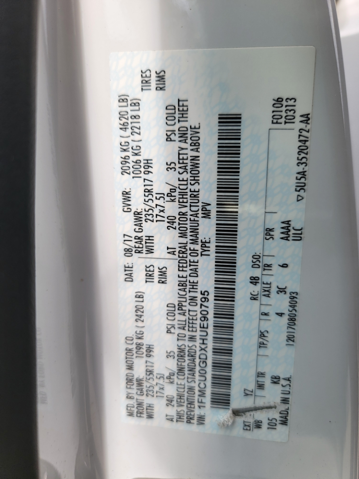Vin: 1FMCU0GDXHUE90795